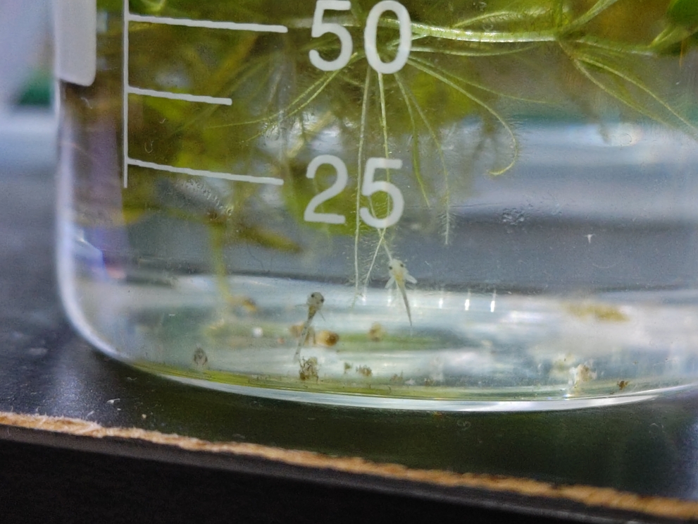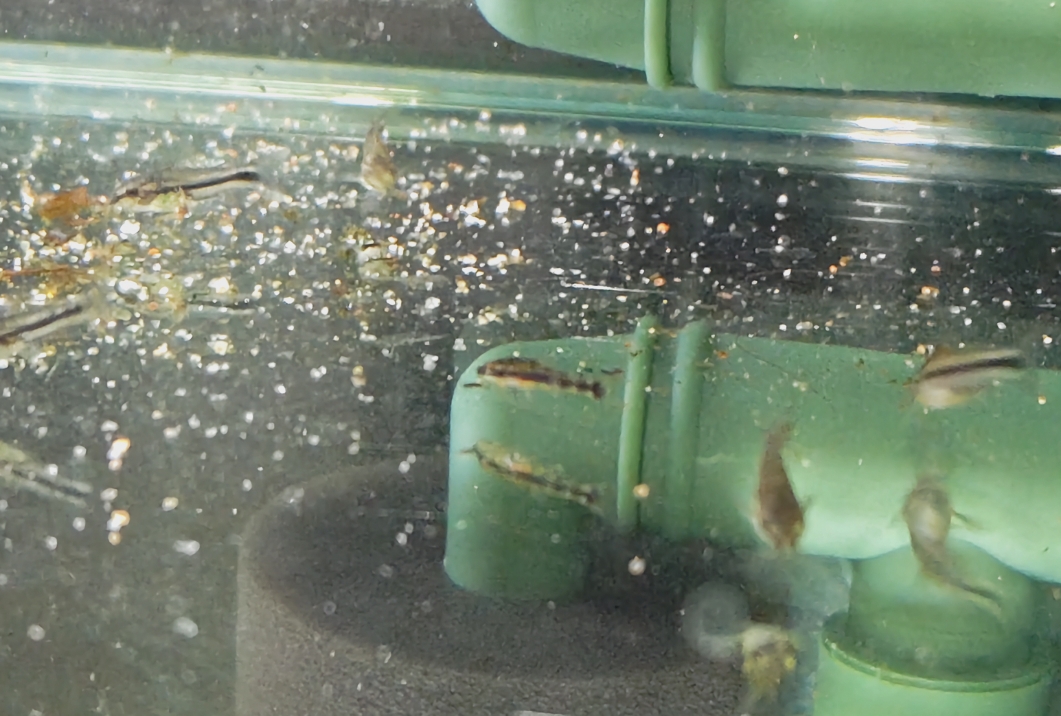 その前の時点では、孵化を待って、浮草浮かべて、ヨークサックが無くなるのを待っているだけです…