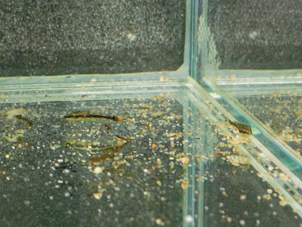 ブラインシュリンプを餌としていたので、通称、南米プラナリアと呼ばれるウズムシがブラインシュリンプの死骸か何かを食べて色づいていましたね。