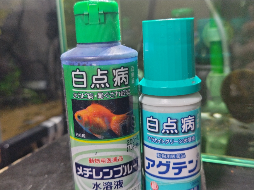 とくに、薬剤の耐性が分からないお魚や孵化までが短いお魚に有効な方法です。あと、勝手に仔魚の毒素となる塩素は抜けていきます。